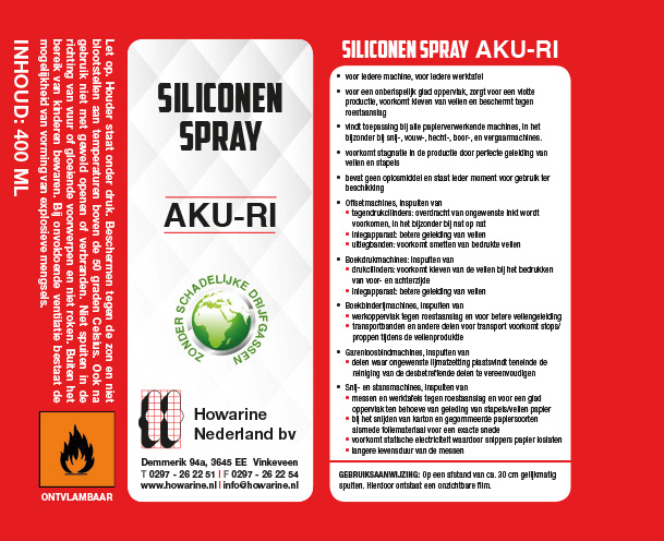 Vormgeving en drukwerk: Zelfklevende etiketten t.b.v. spuitbus siliconenspray