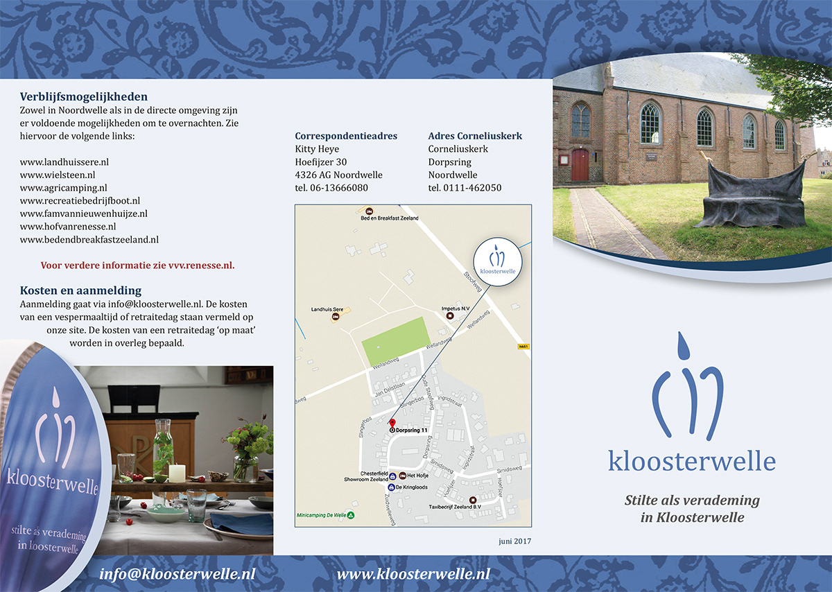 Vormgeving en drukwerk: Drieluik folder 100x210 mm op gesatineerd papier.